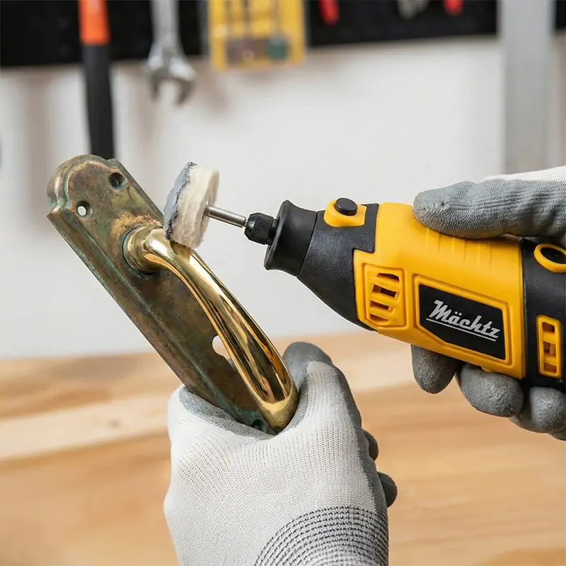 Электрический гравер Mächtz MMG-310 — компактный и надежный инструмент, который подходит для широкого спектра работ: от гравировки и шлифования до полировки, резки и очистки. В комплекте предусмотрен набор из 126 насадок, что позволяет выполнять большинство бытовых и мастерских задач. Все элементы аккуратно размещены в удобном кейсе.