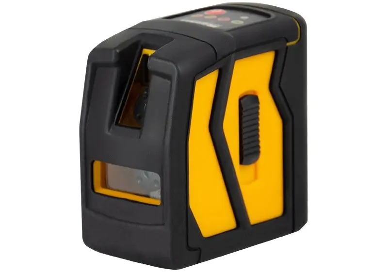Яркий лазер красного спектра излучает горизонтальную и вертикальную проекции, или обе проекции одновременно, на расстояние до 15м.