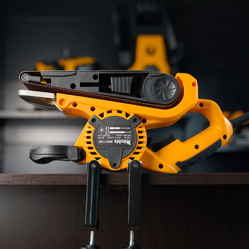 Завдяки двигуну потужністю 1100 Вт і регульованій швидкості руху стрічки 200-380 м/хв інструмент легко впорається з більшістю завдань.