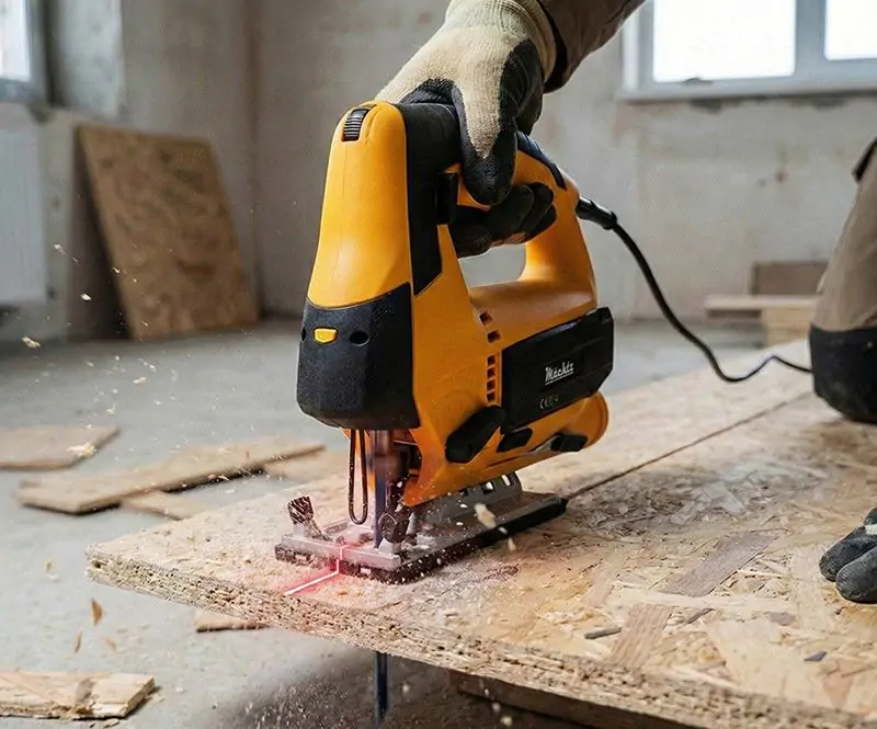 Наявність лазерного покажчика в лобзику суттєво підвищує точність та зручність ведення інструмента по розміченій лінії.