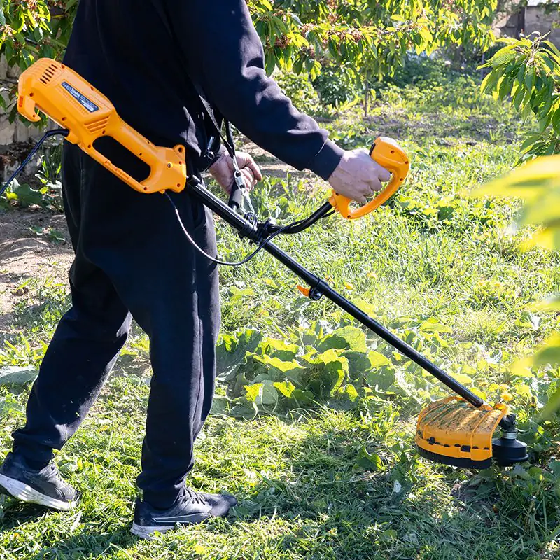 Наплічний ремінь в комплекті допомагає знизити навантаження на руки і обробити газон швидко і якісно.