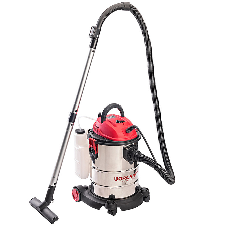 Будівельний електричний пилосос WORCRAFT VC12-25 - потужний і компактний багатоцільовий пилосос для швидкого та ретельного вологого очищення м'яких меблів, килимів і килимових покриттів, а також для сухого прибирання, чищення від пилу будь-яких поверхонь, збирання будівельного сміття.
